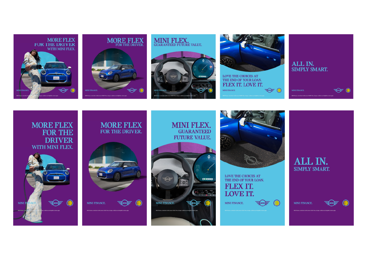 BMW Group Financial Services has tasked us with updating all MINI Financial Services communications to reflect the new tagline: All In. Simply Smart. To bring this to life, we developed a variety of engaging social media assets to showcase the new messaging across platforms.