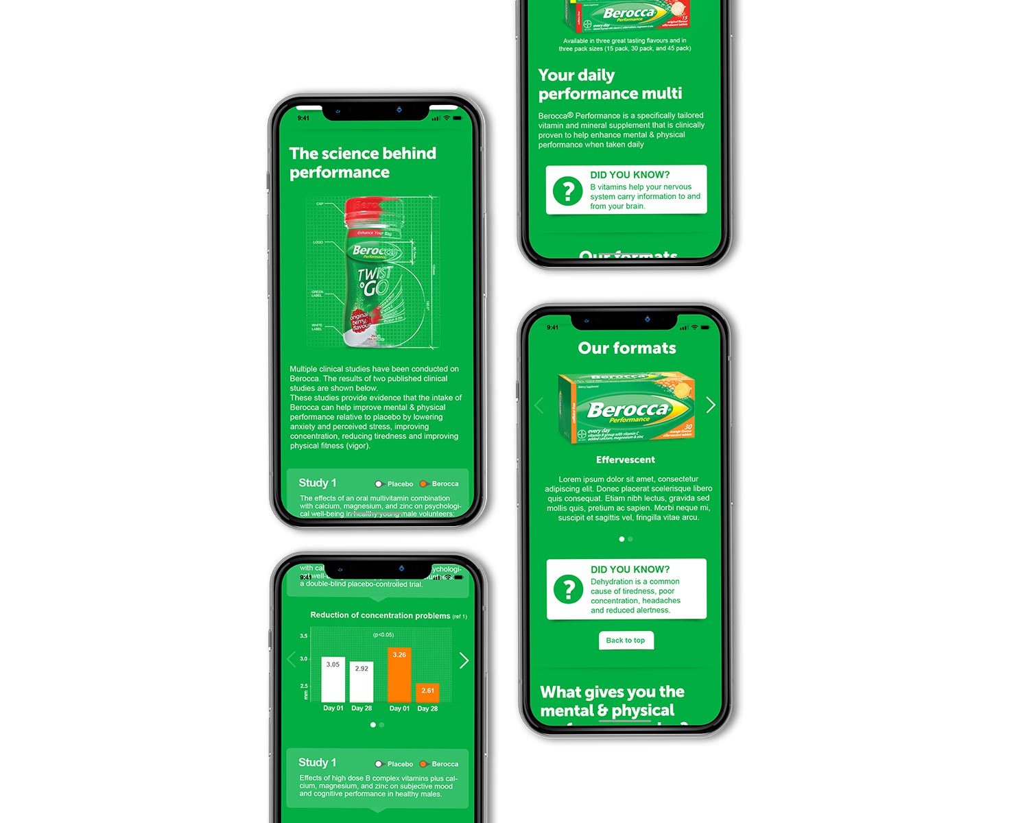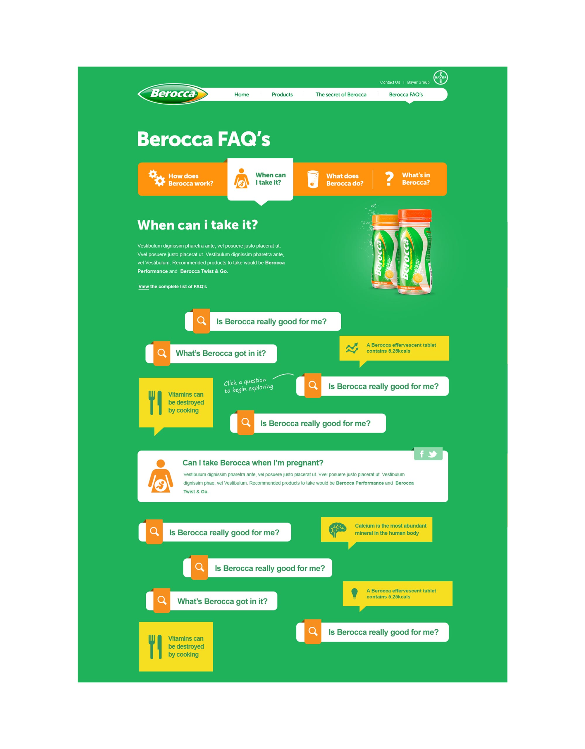 I successfully redesigned Bayer Berocca's website, creating a dynamic and visually captivating platform. Each page features a unique color scheme to showcase different products, improving user engagement and navigation. The new website now presents a visually striking and interactive experience that highlights the brand's diverse range of offerings, elevating its digital presence.